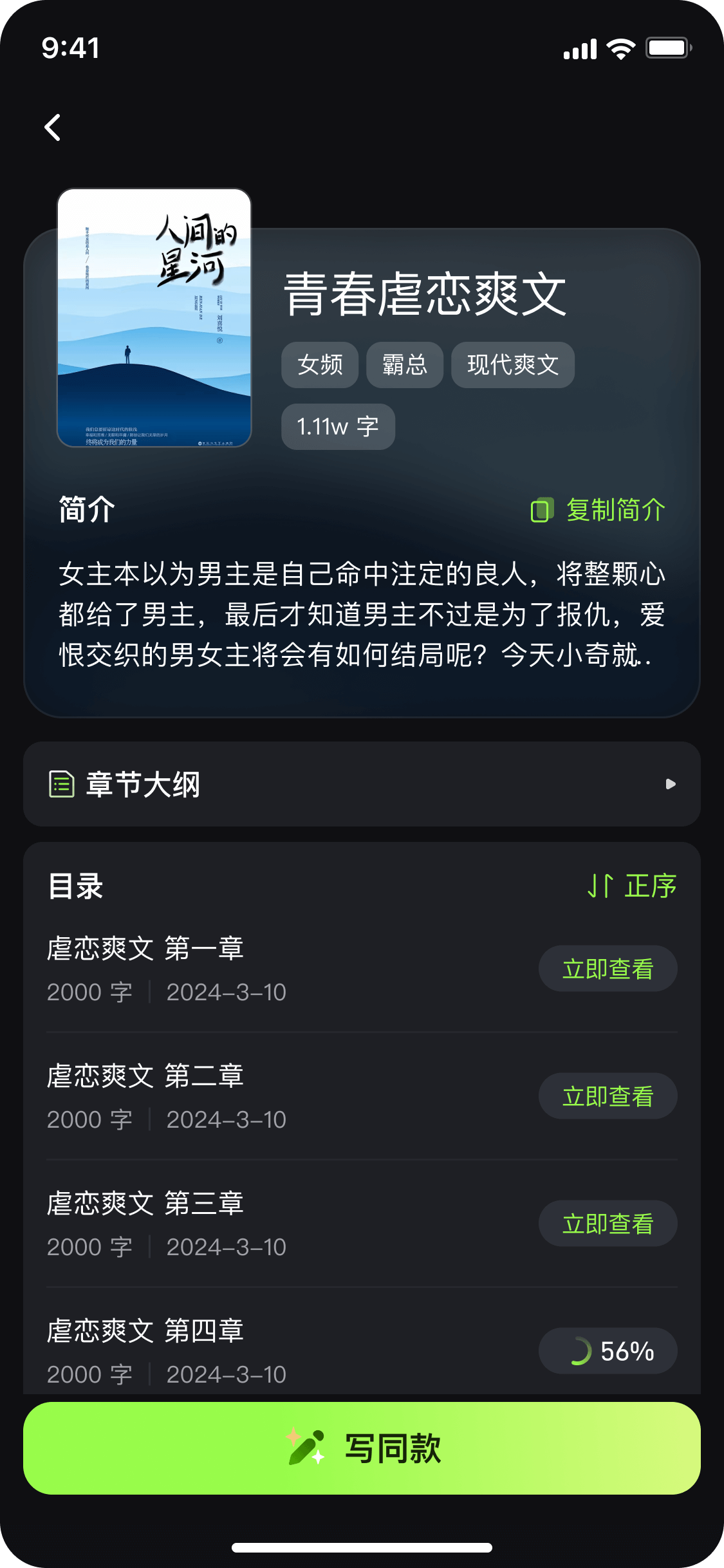 Penman Pro APP,一部手机就能解锁高效创作!无论通勤路上、午休片刻,打开 APP,随时随地开启小说创作。 APP 基于前沿自然语言处理与深度学习技术,提供全流程创作辅助。输入 “末日废墟”“机械觉醒” 等关键词,AI 秒速生成完整故事框架,覆盖主线、关键事件与叙事节奏;结合热血爽文、悬疑烧脑等风格设定,自动赋予故事独特基调。角色塑造上,仅需描述 “坚韧女特工,左眼佩戴机械义眼”,AI 即可从外貌、性格、背景等多维度构建立体人设,连口头禅、标志性动作都能精准生成。 面对场景描写难题,智能场景生成功能即刻响应。无论是惊心动魄的追车戏,还是缱绻浪漫的告白场景,输入主题与氛围需求,AI 输出画面感十足的细节描写。内置海量经典小说案例库,支持实时检索,为灵感续航。 在创作体验上,APP 支持语音输入,释放双手;具备实时保存与多端同步功能,手机、平板、电脑进度无缝衔接;还搭载错别字检测与语法纠错,保障文字质量。无论是网文新手还是资深作者,Penman Pro都能助你快速将创意转化为优质作品,让创作不再困难!